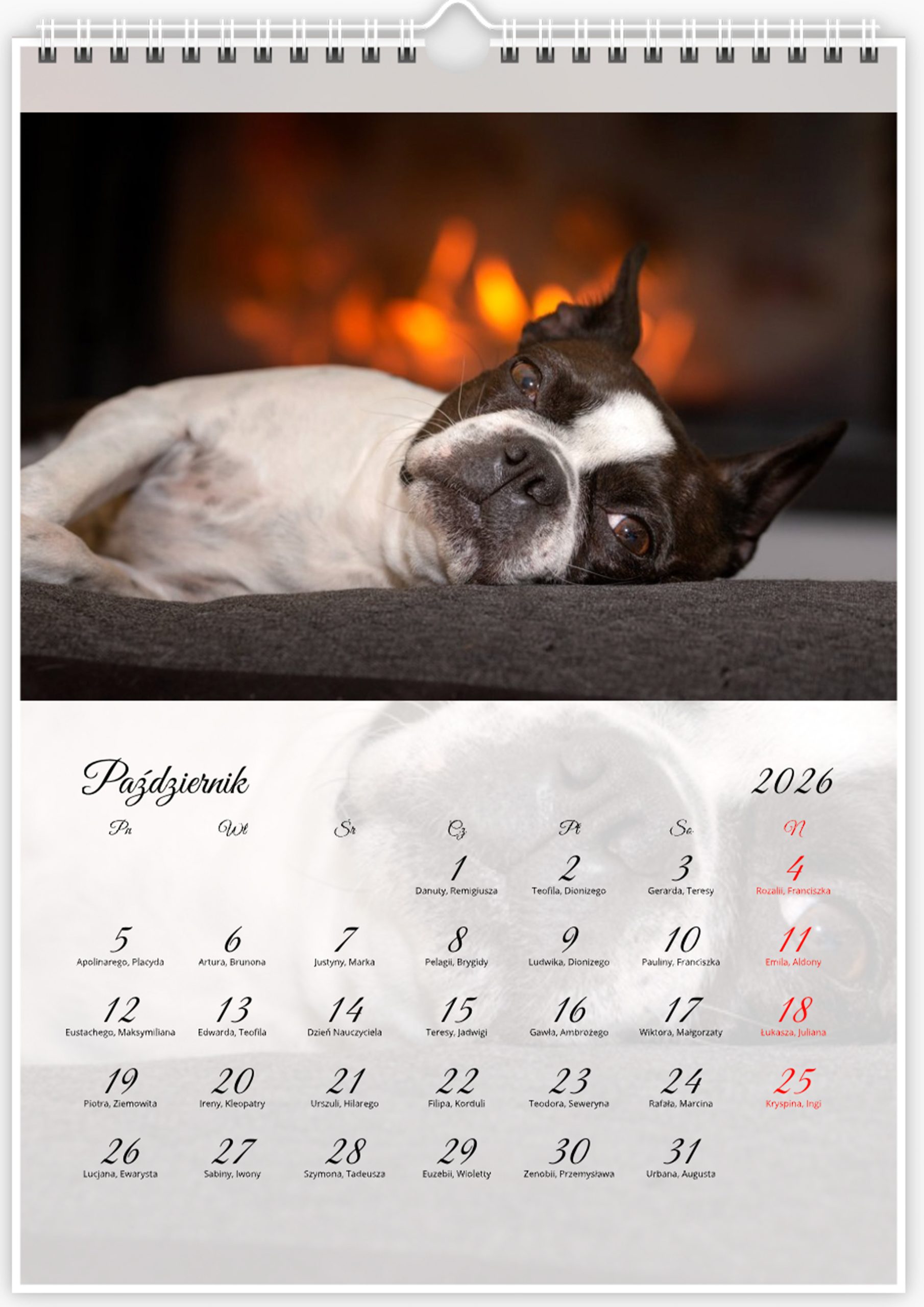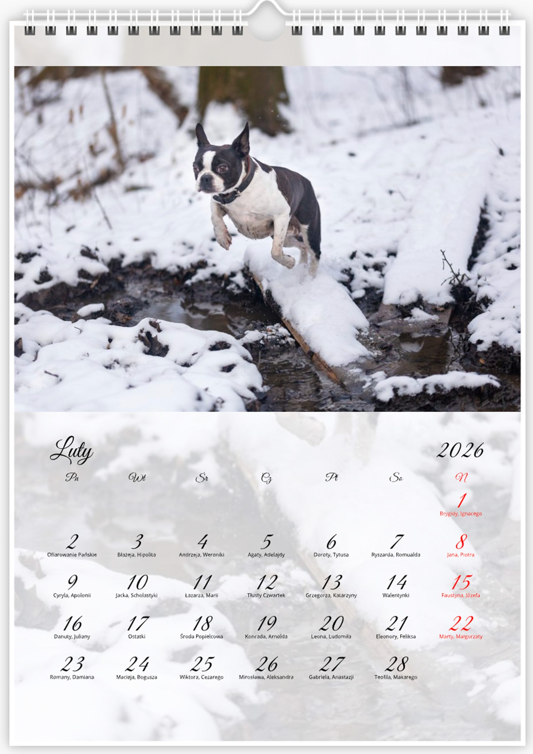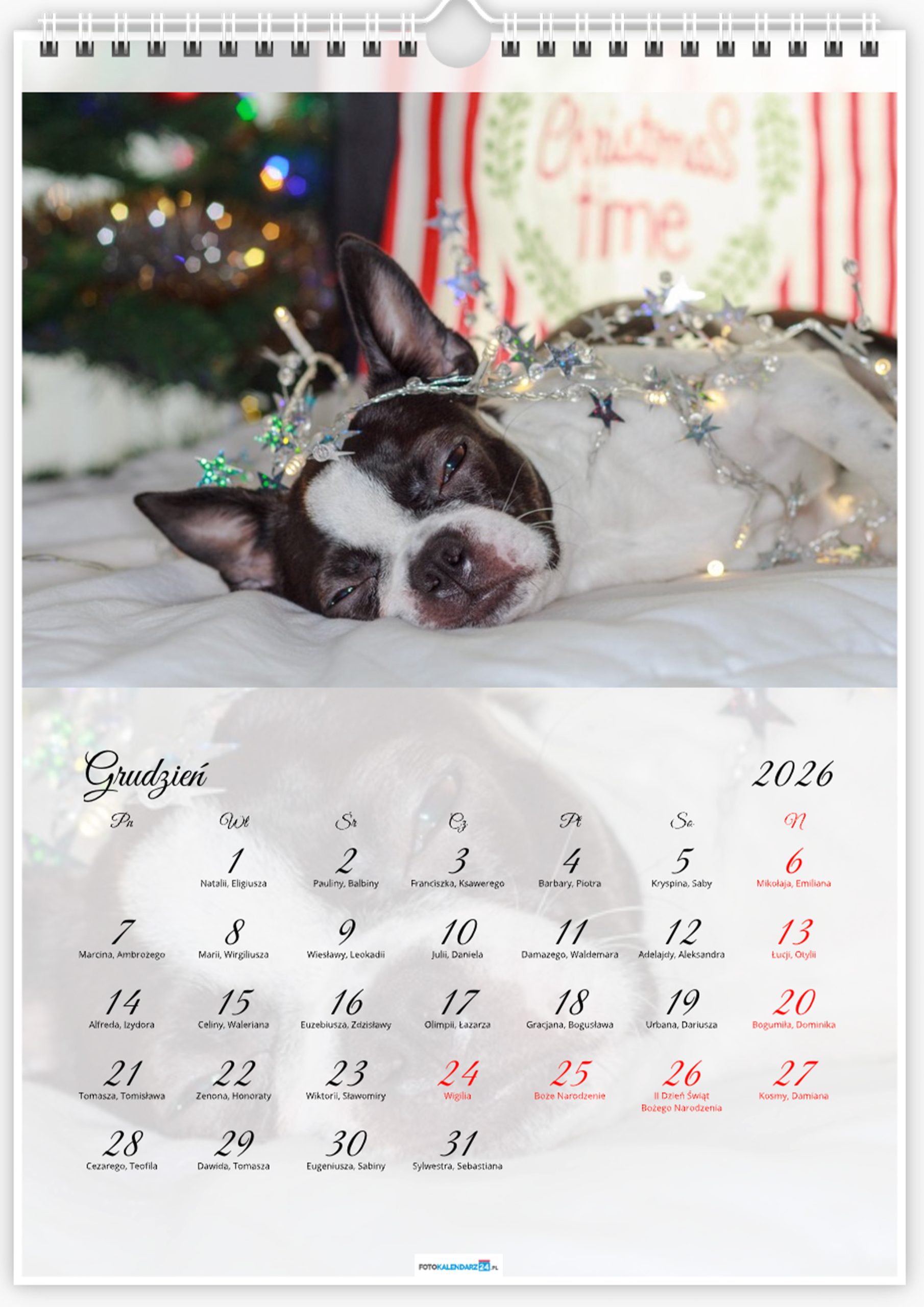 Dostępny do zamówienia tutaj: https://gryze.pl/kalendarz/637-boston-terrier-kalendarz-na-2026-rok-nana.html