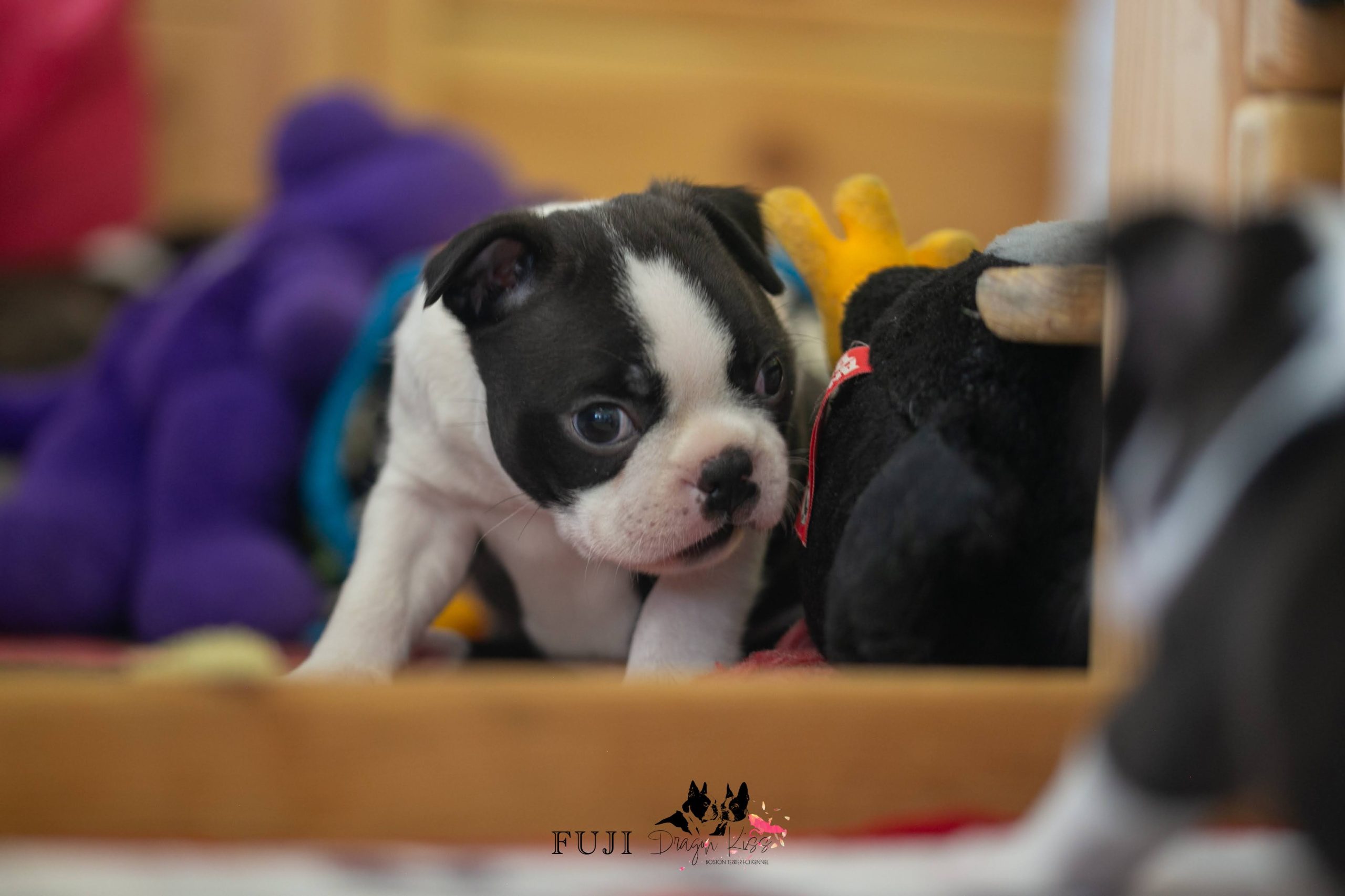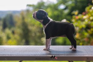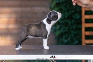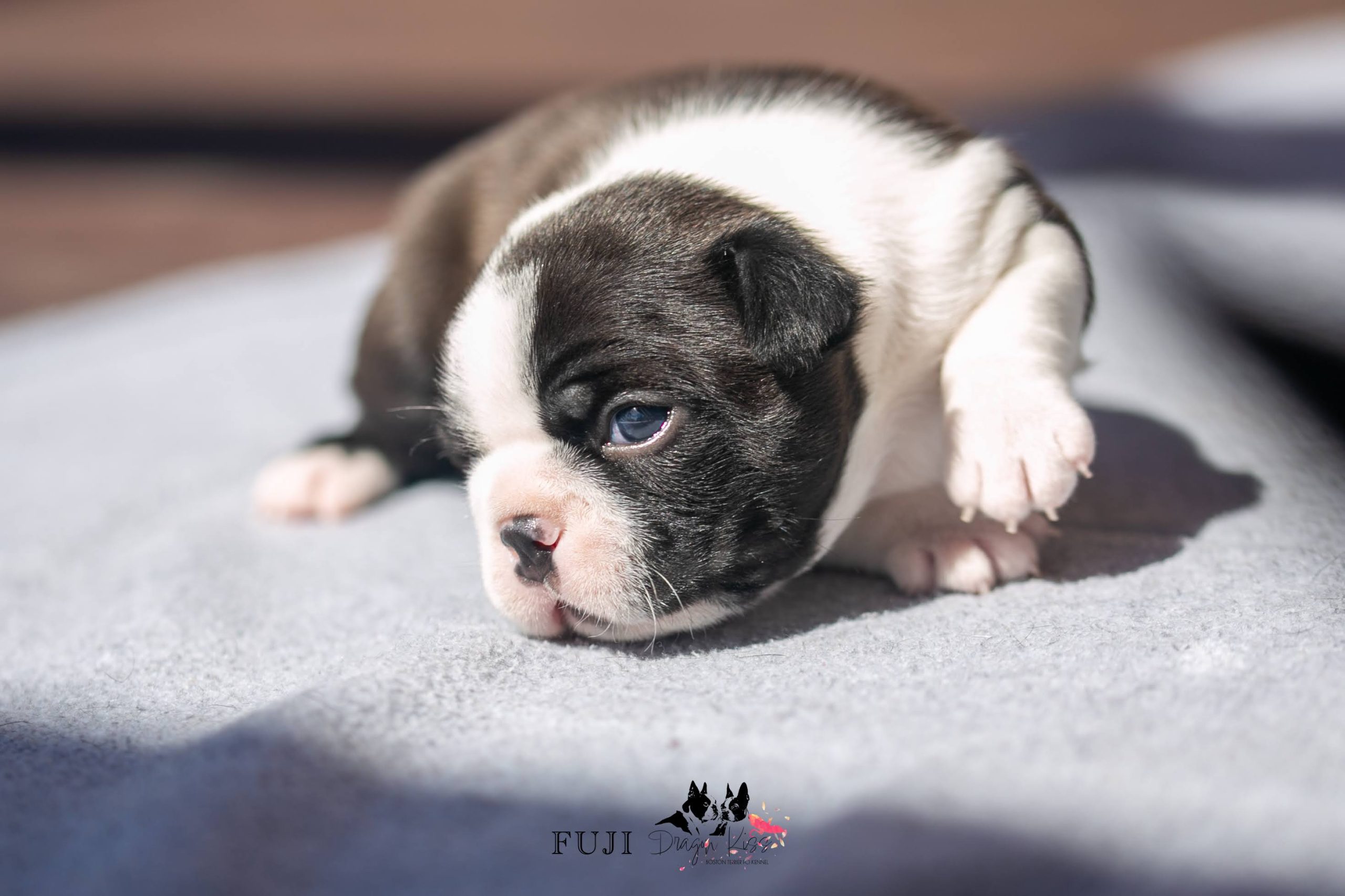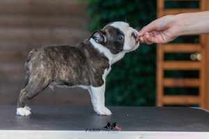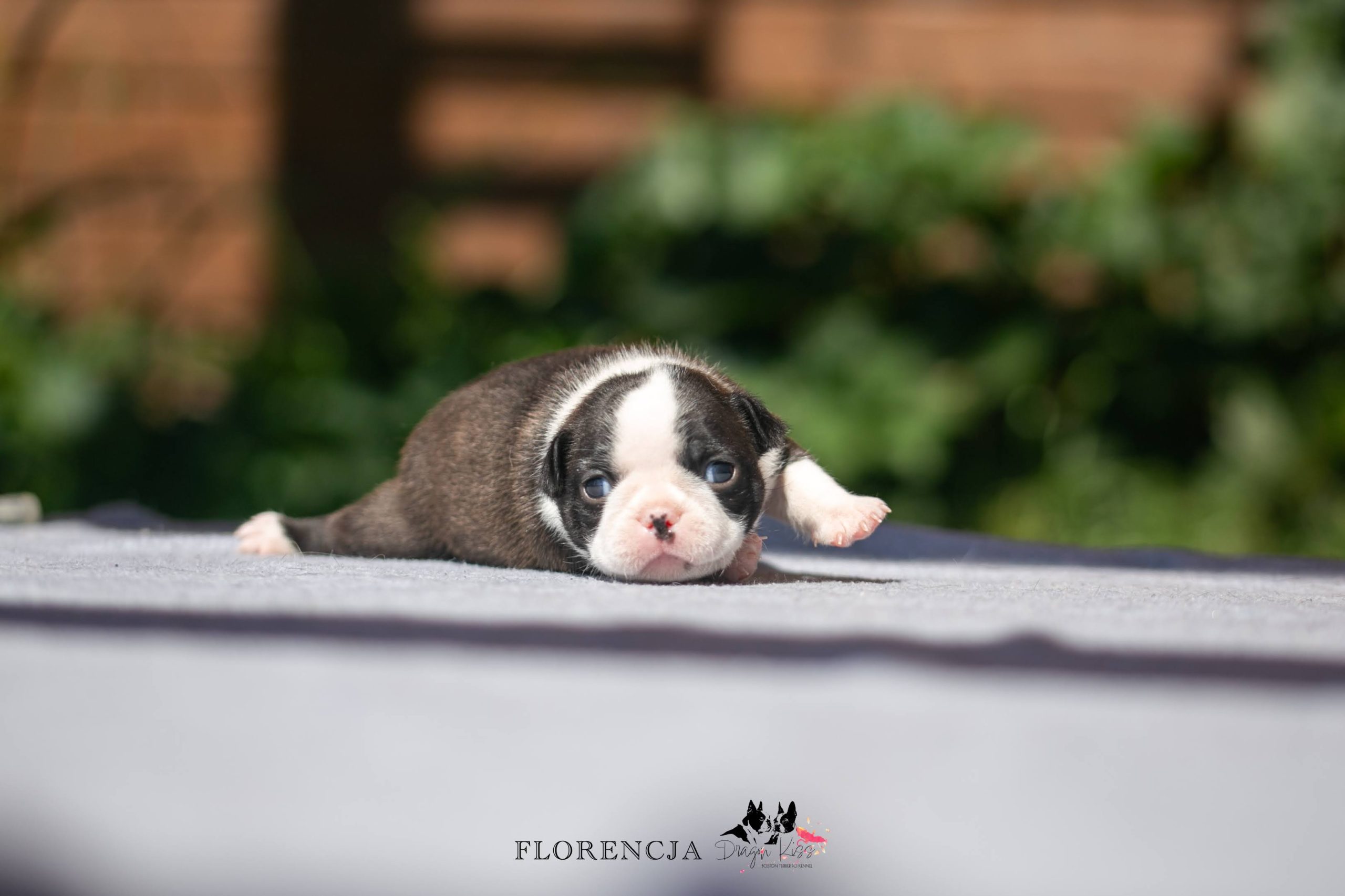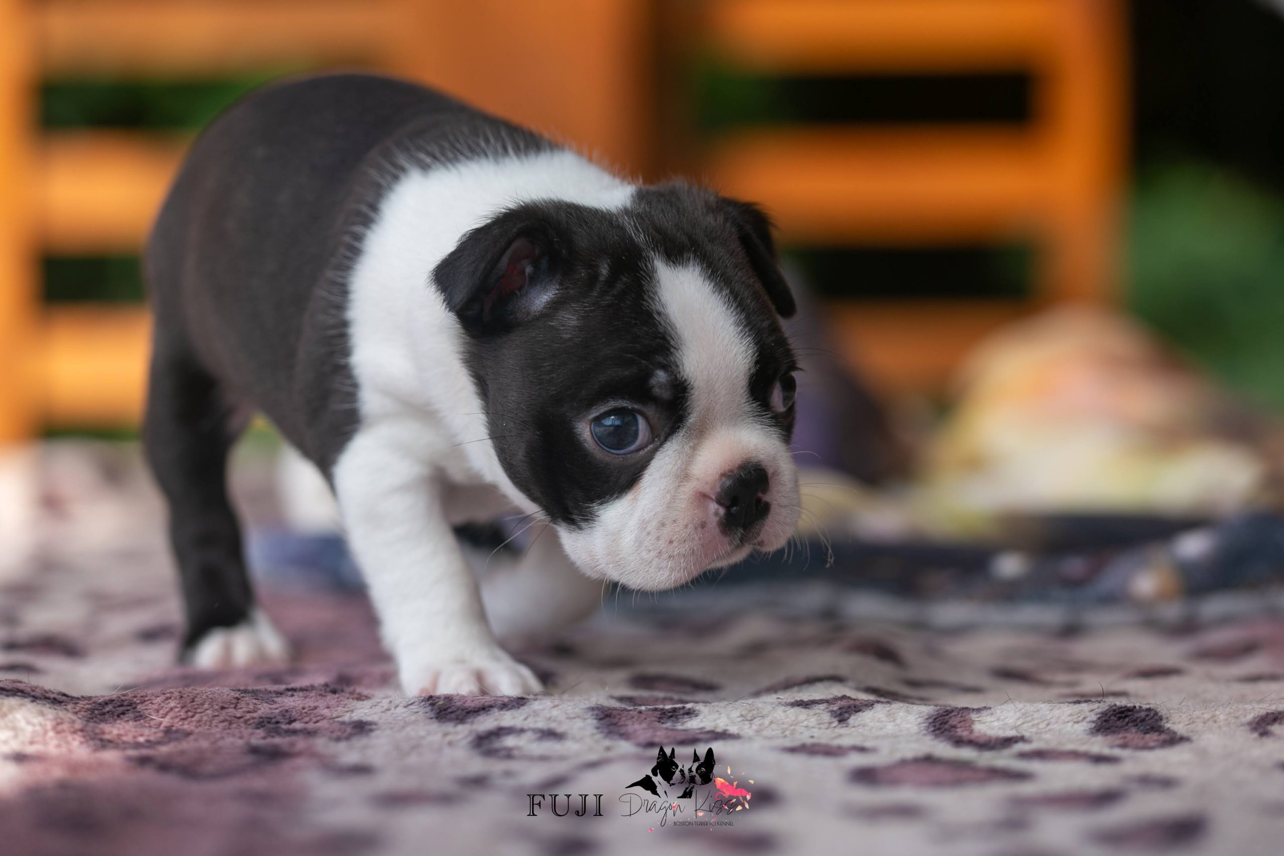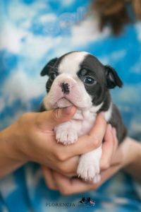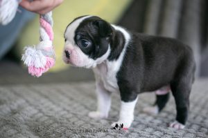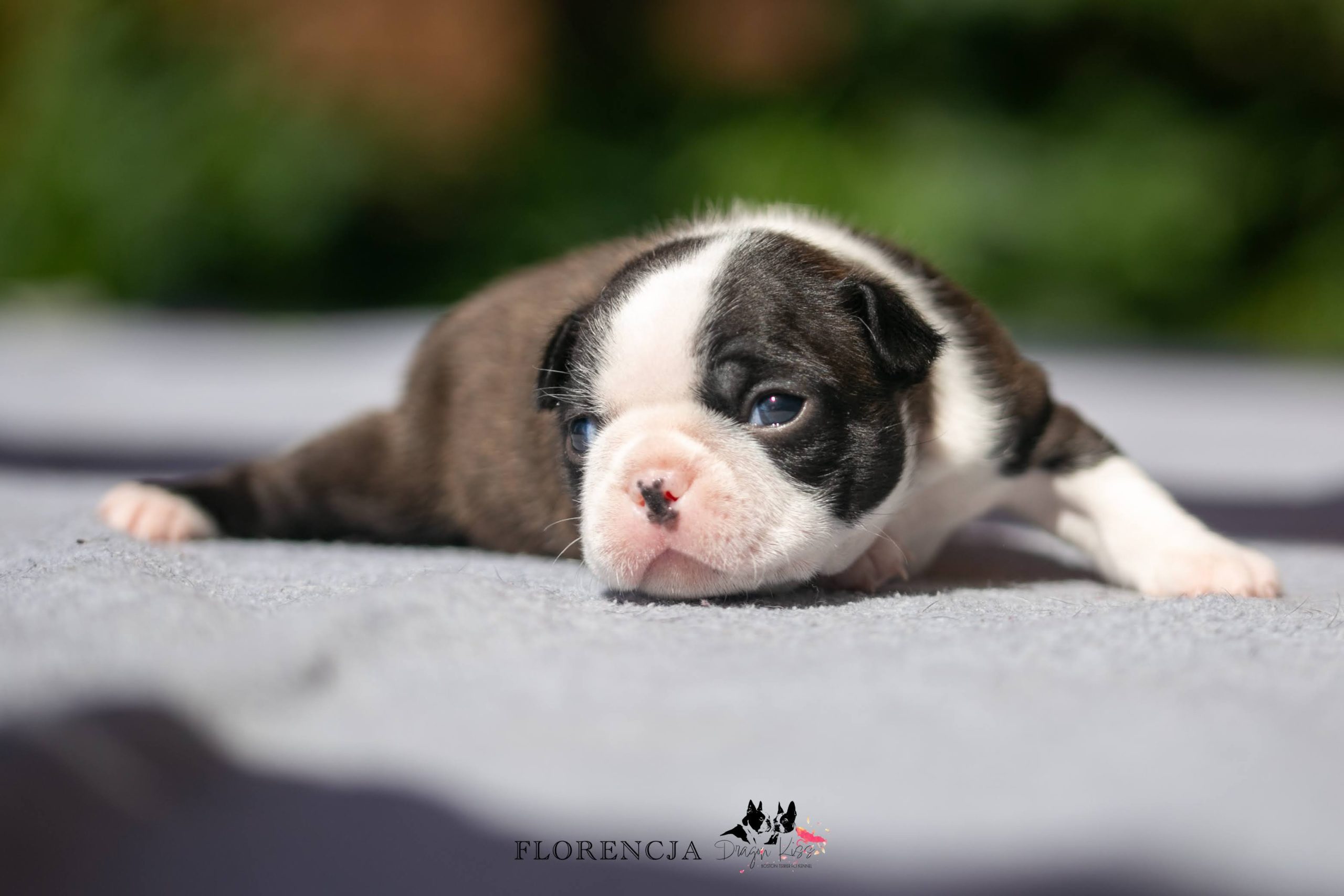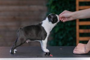 Fina – dziewczynka rodowodowo nazwana na cześć narodzin miotu w dzień oceny bostonów na WDS w Helsinkach.