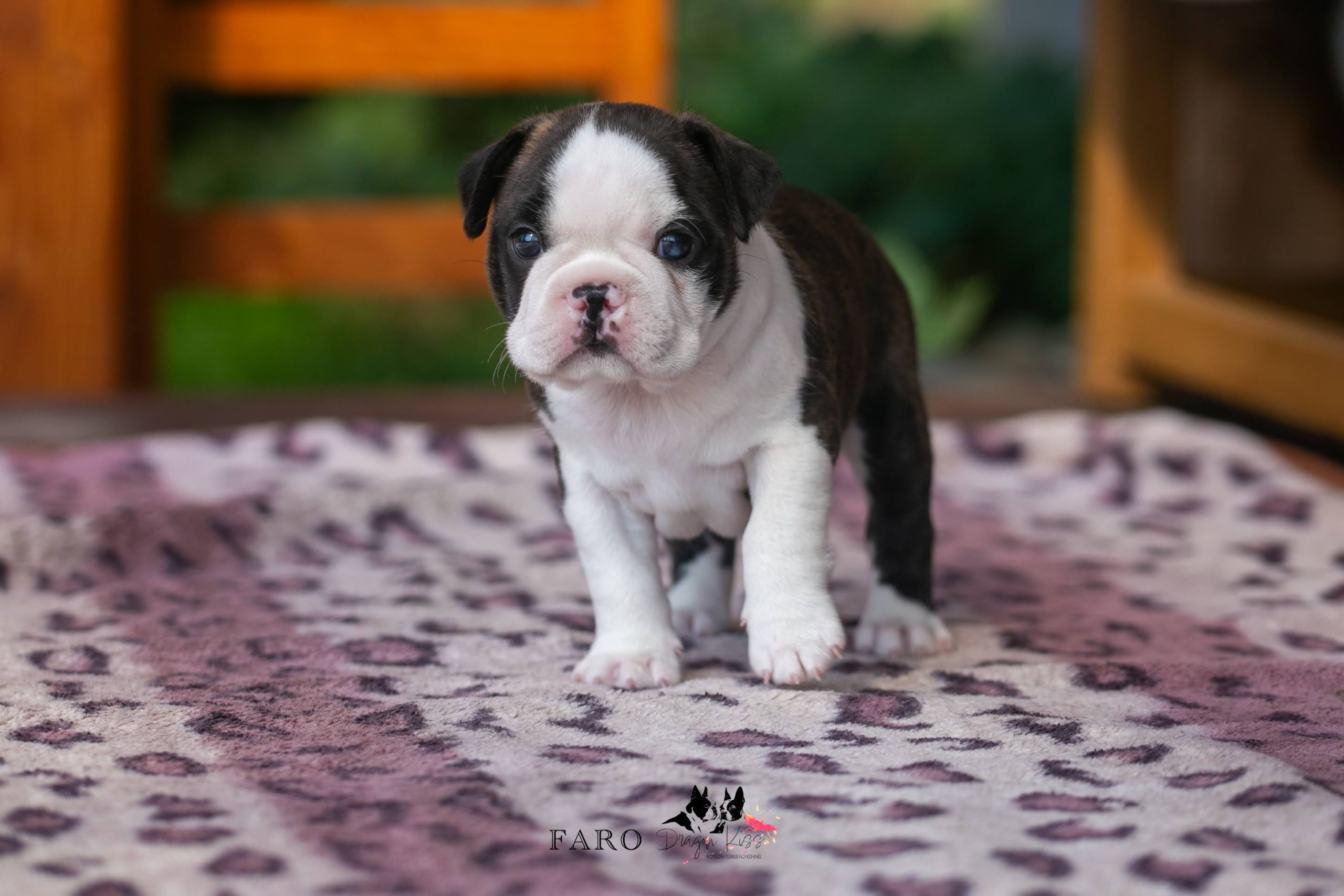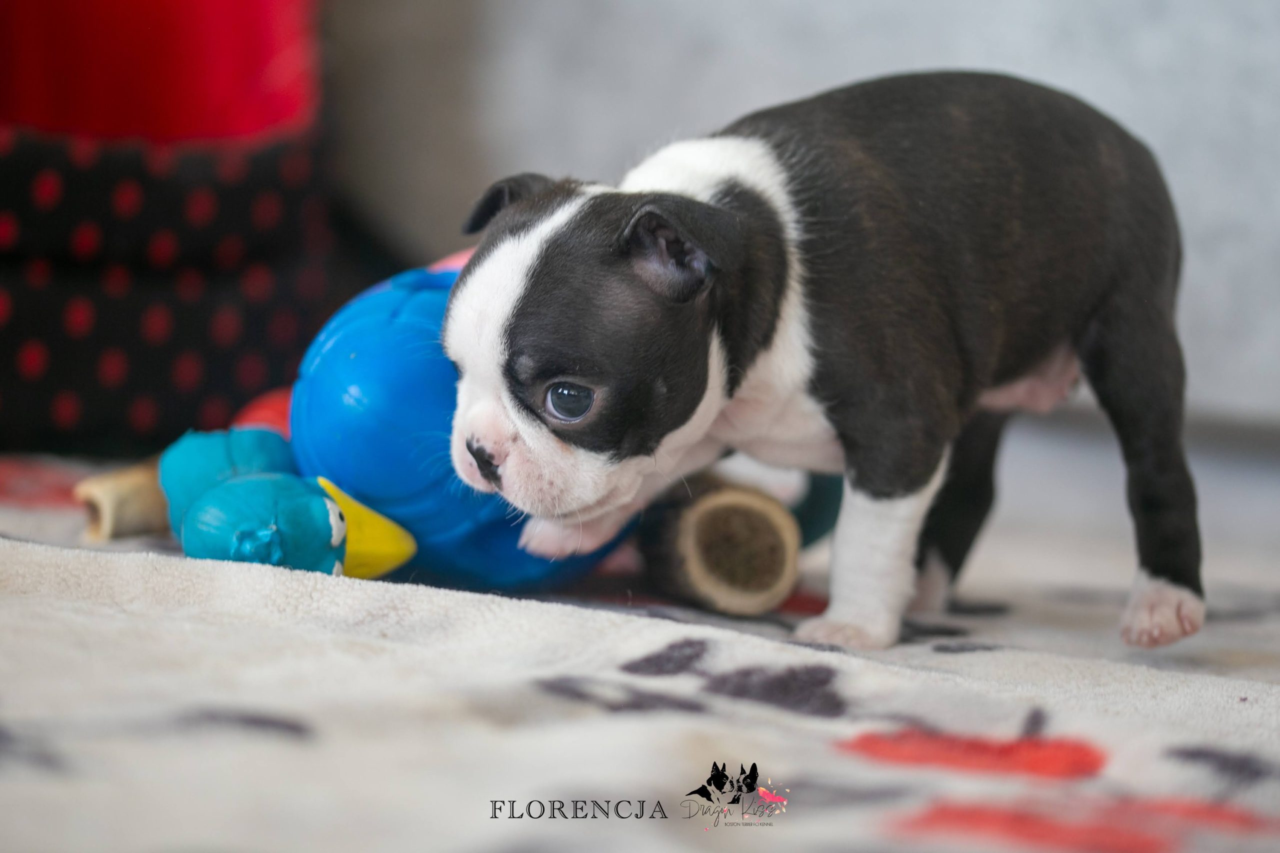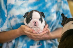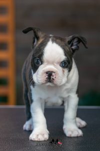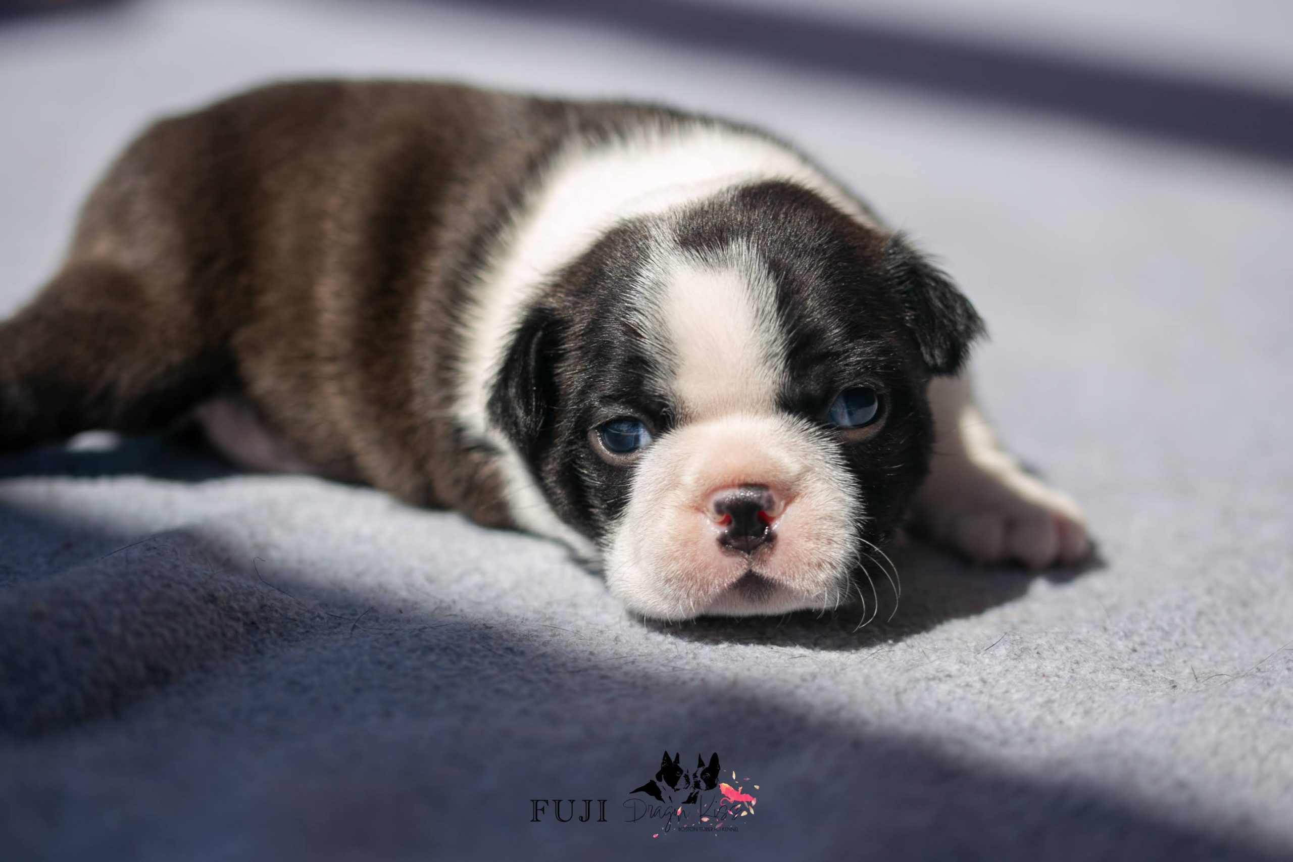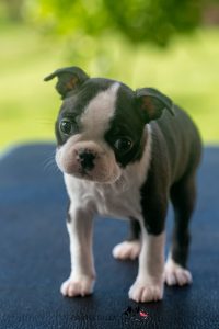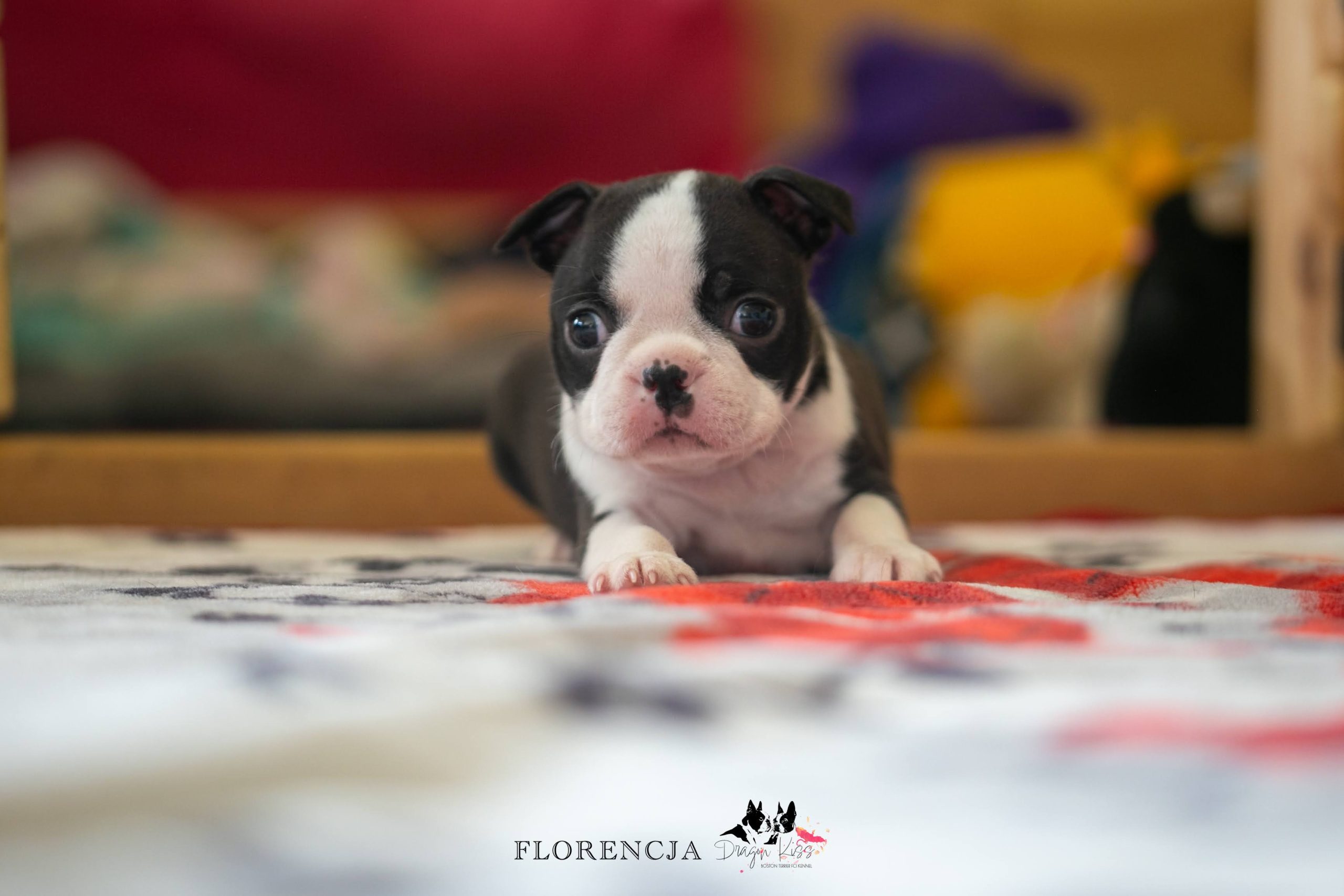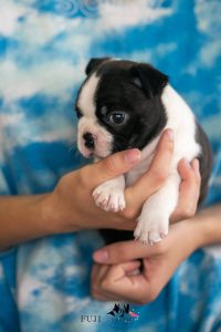 Fina – dziewczynka rodowodowo nazwana na cześć narodzin miotu w dzień oceny bostonów na WDS w Helsinkach.