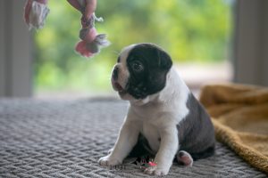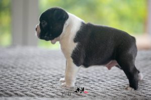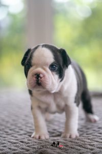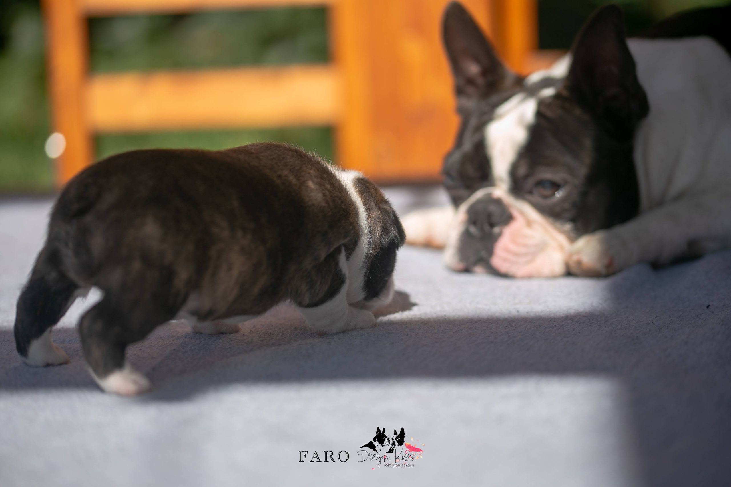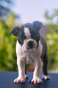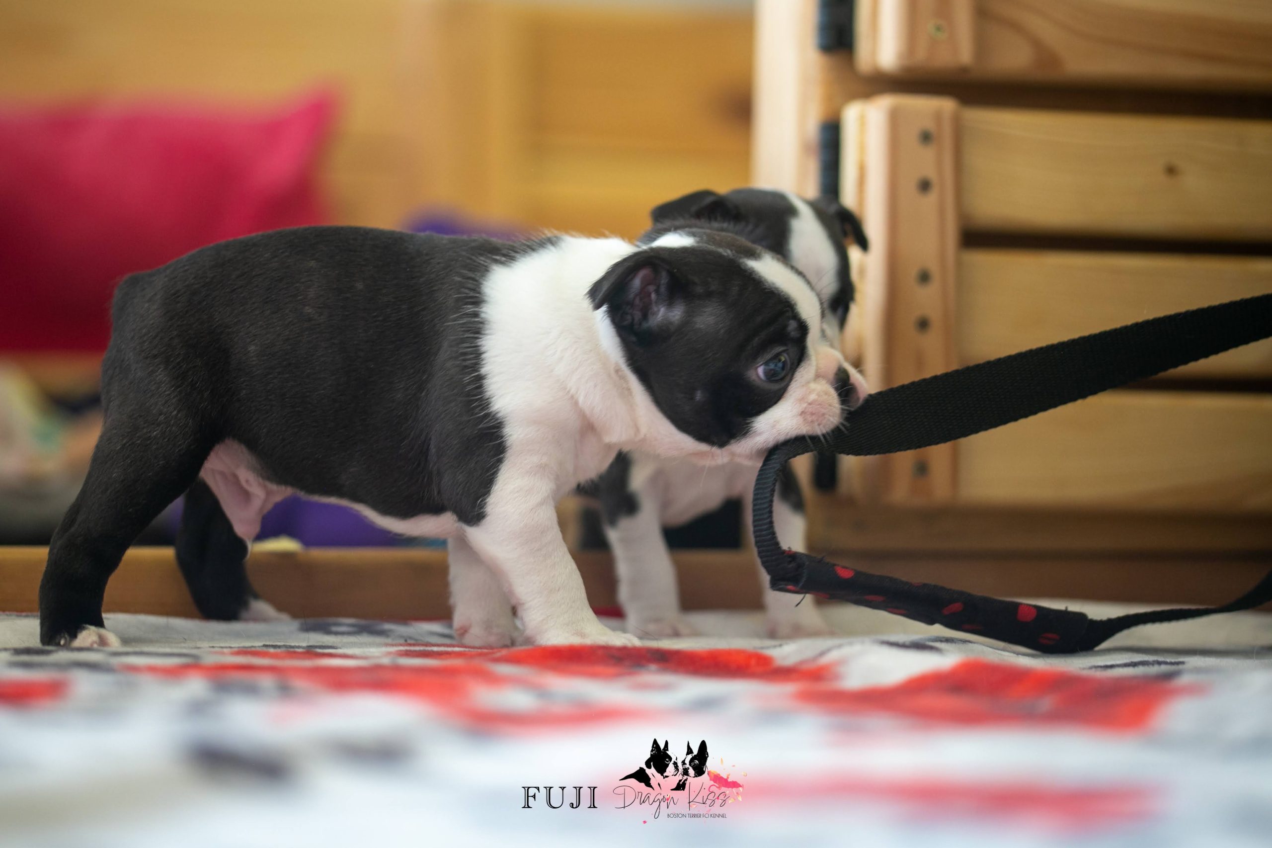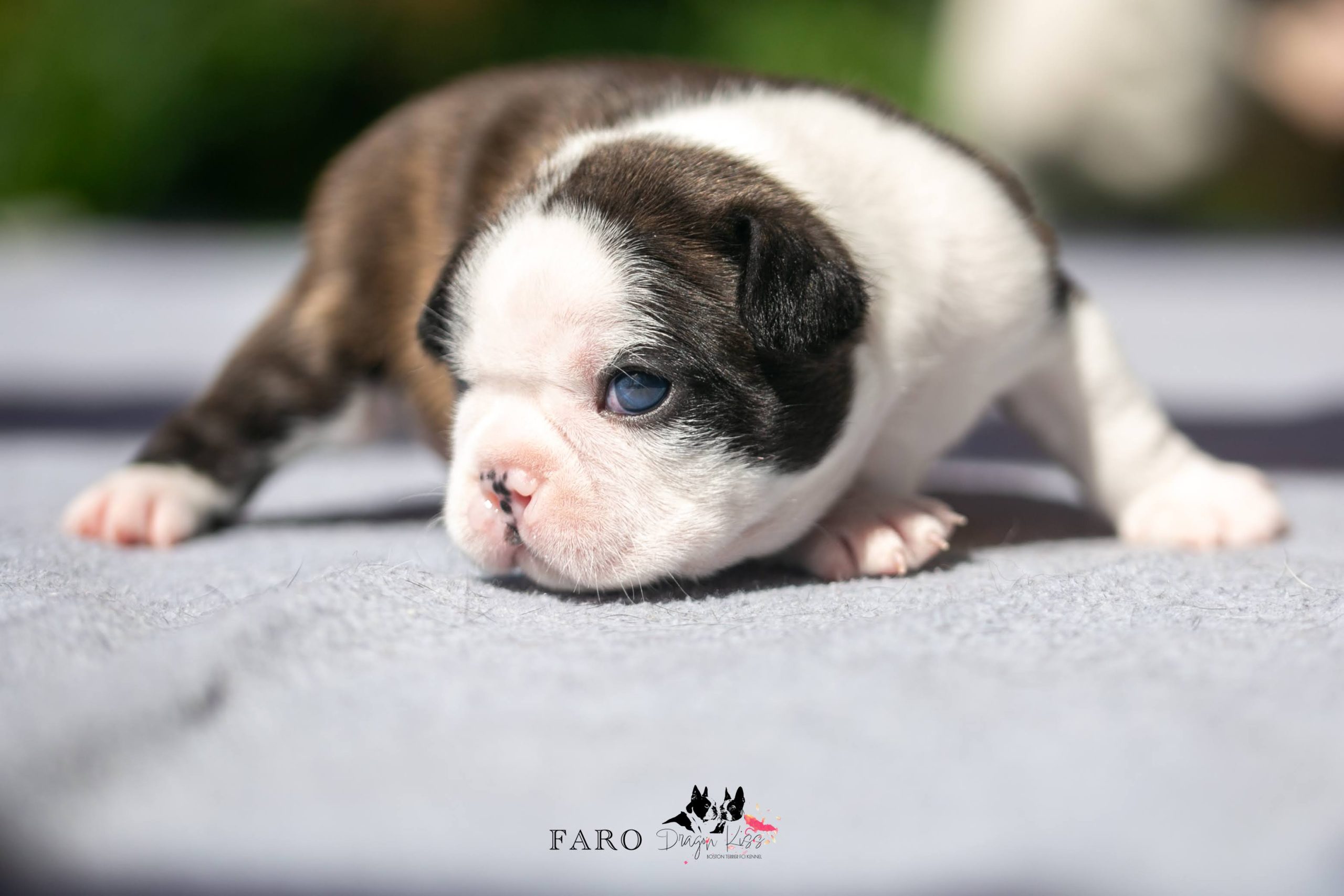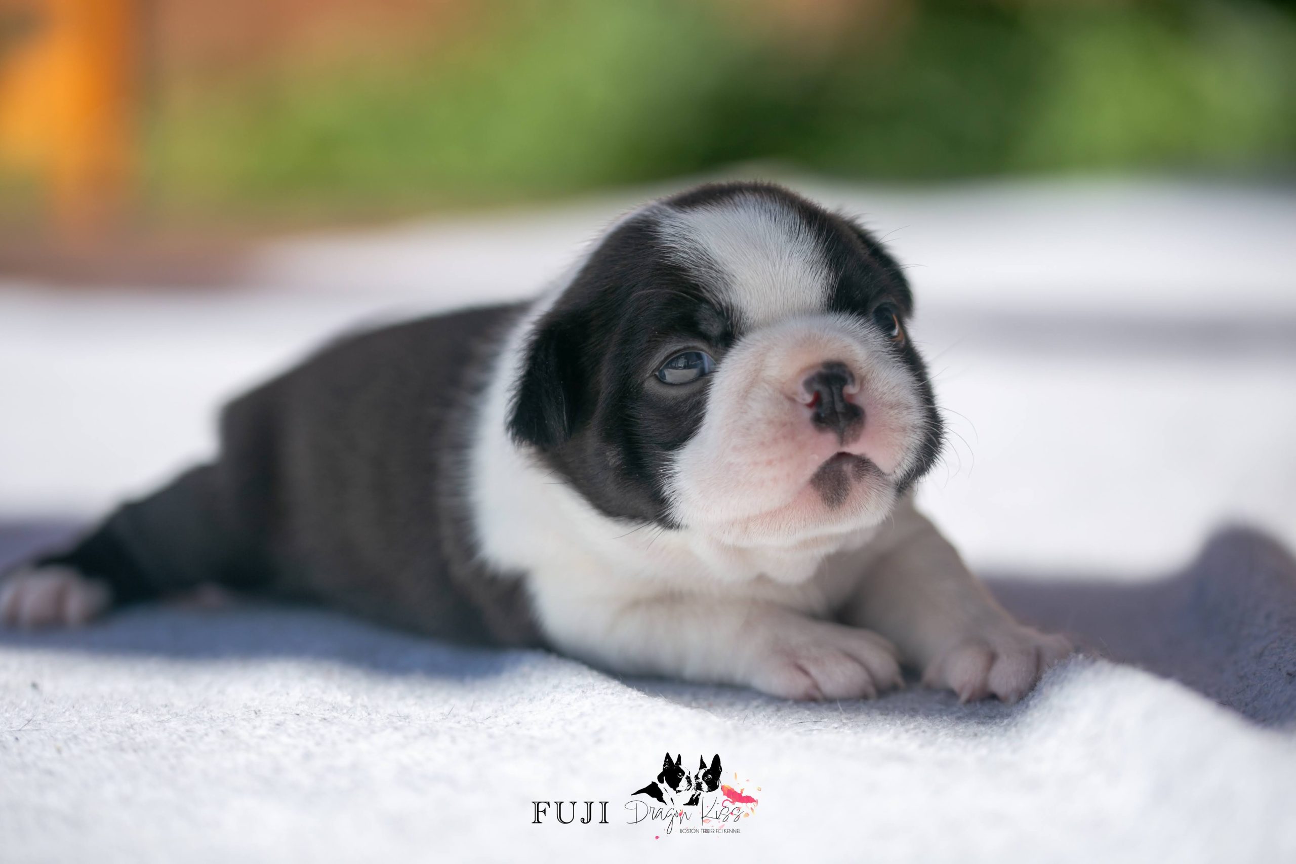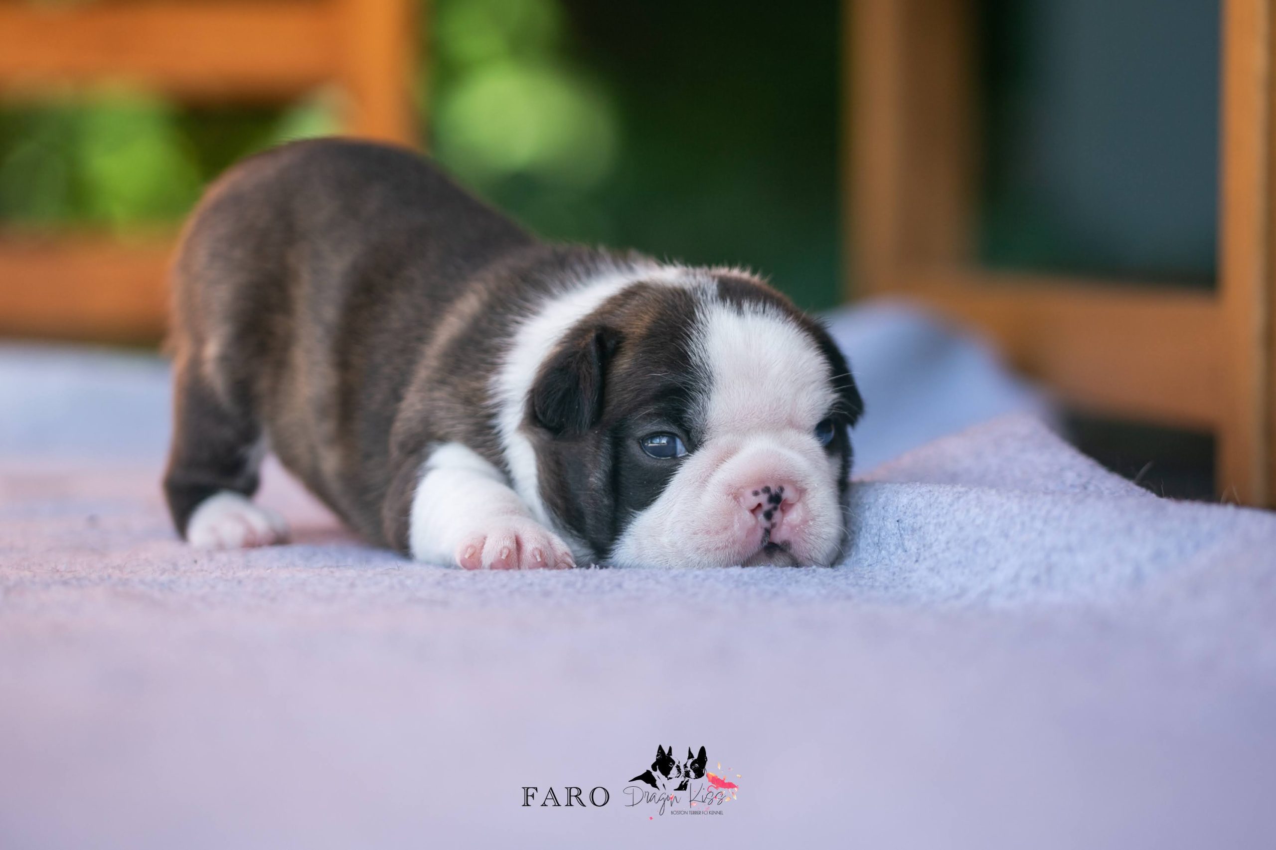 Fina – dziewczynka rodowodowo nazwana na cześć narodzin miotu w dzień oceny bostonów na WDS w Helsinkach.