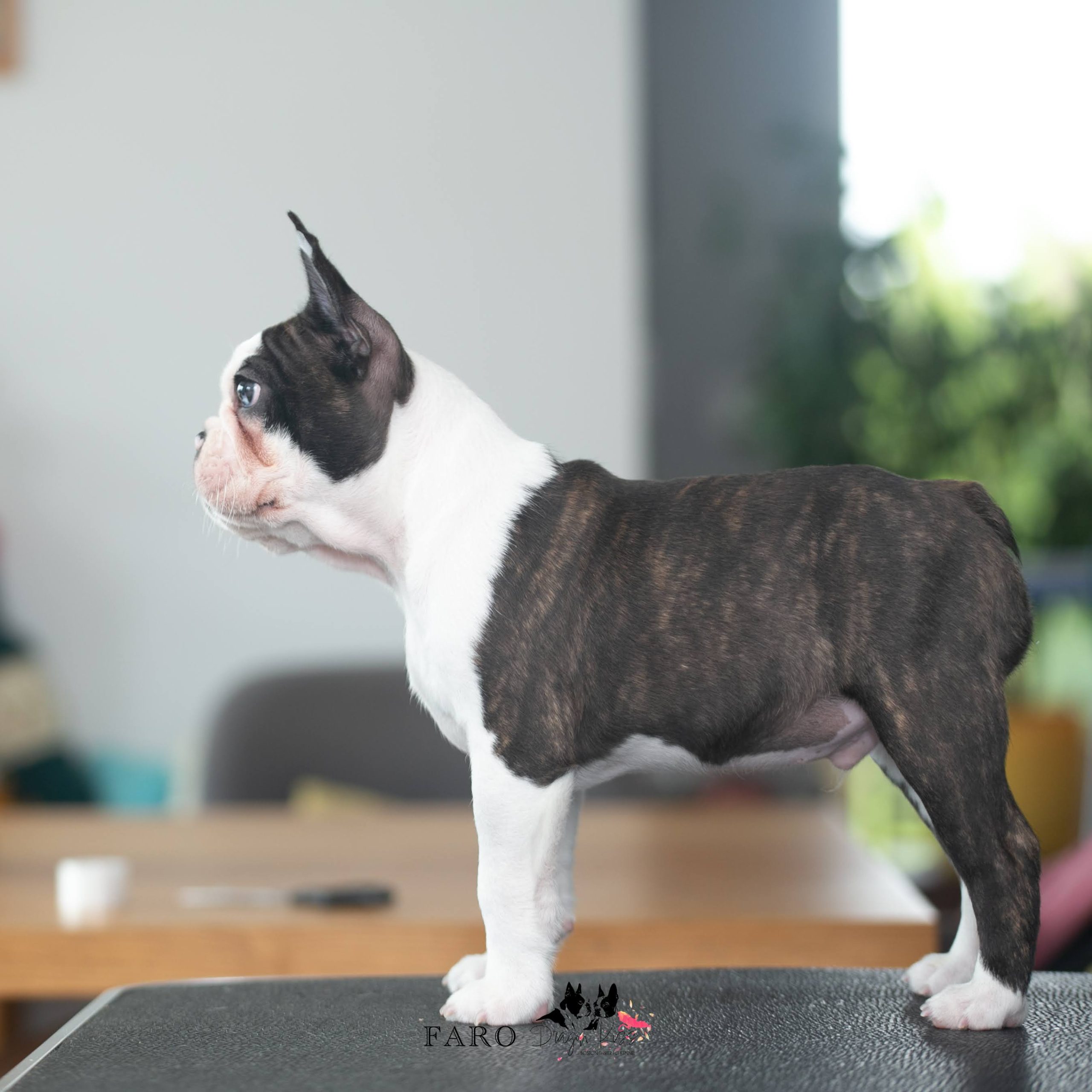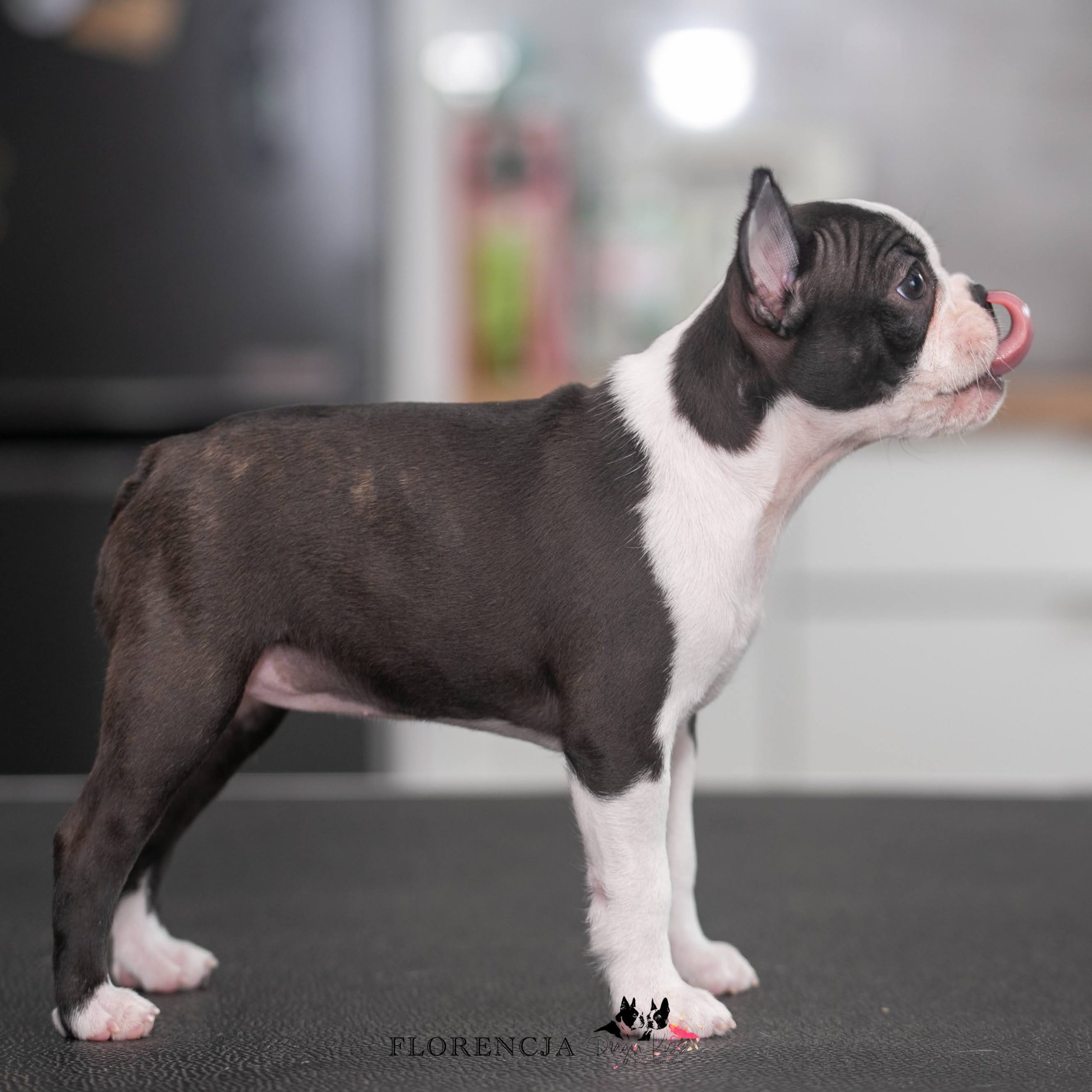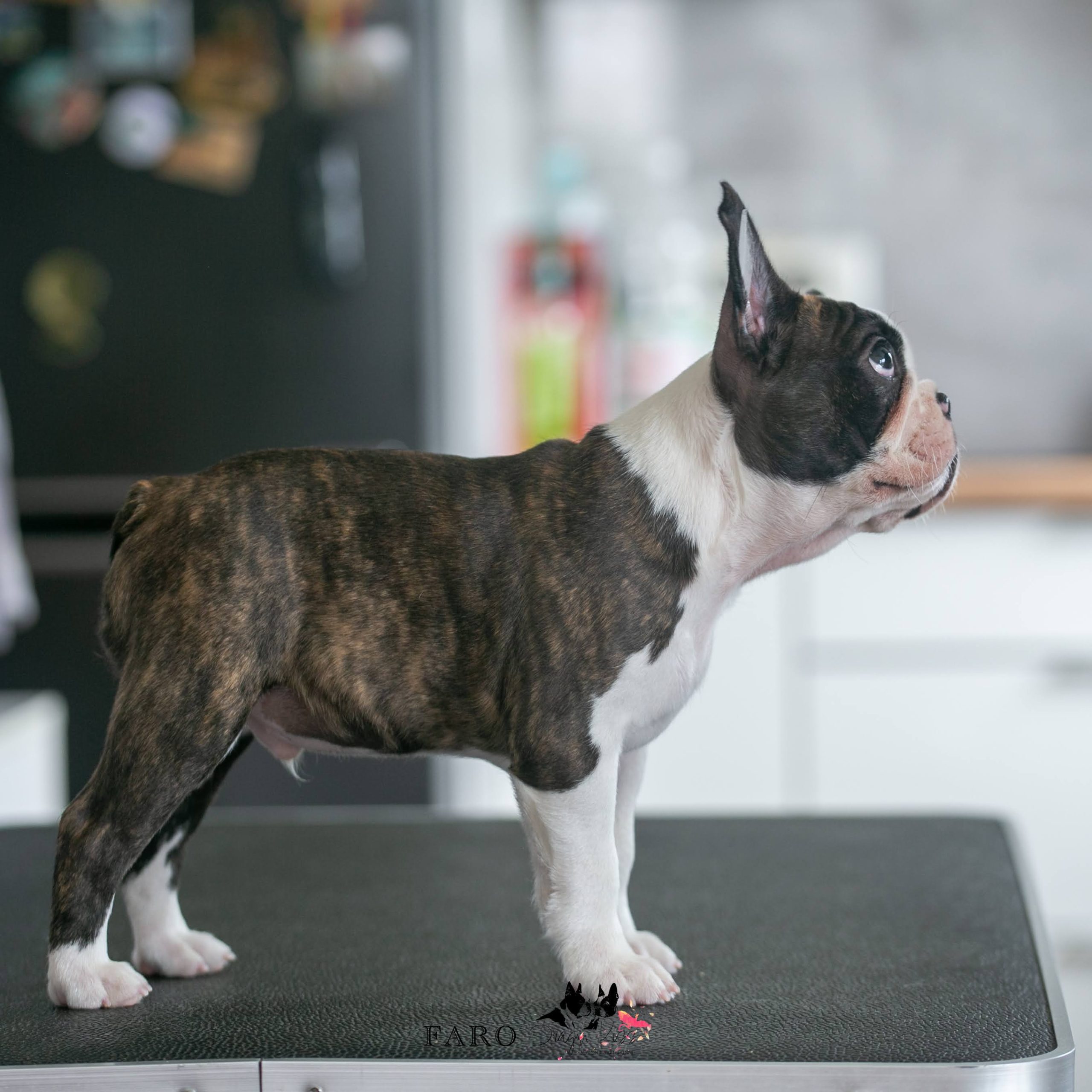 Fina – dziewczynka rodowodowo nazwana na cześć narodzin miotu w dzień oceny bostonów na WDS w Helsinkach.